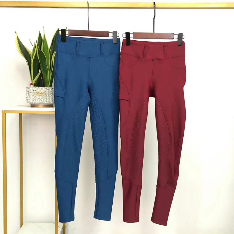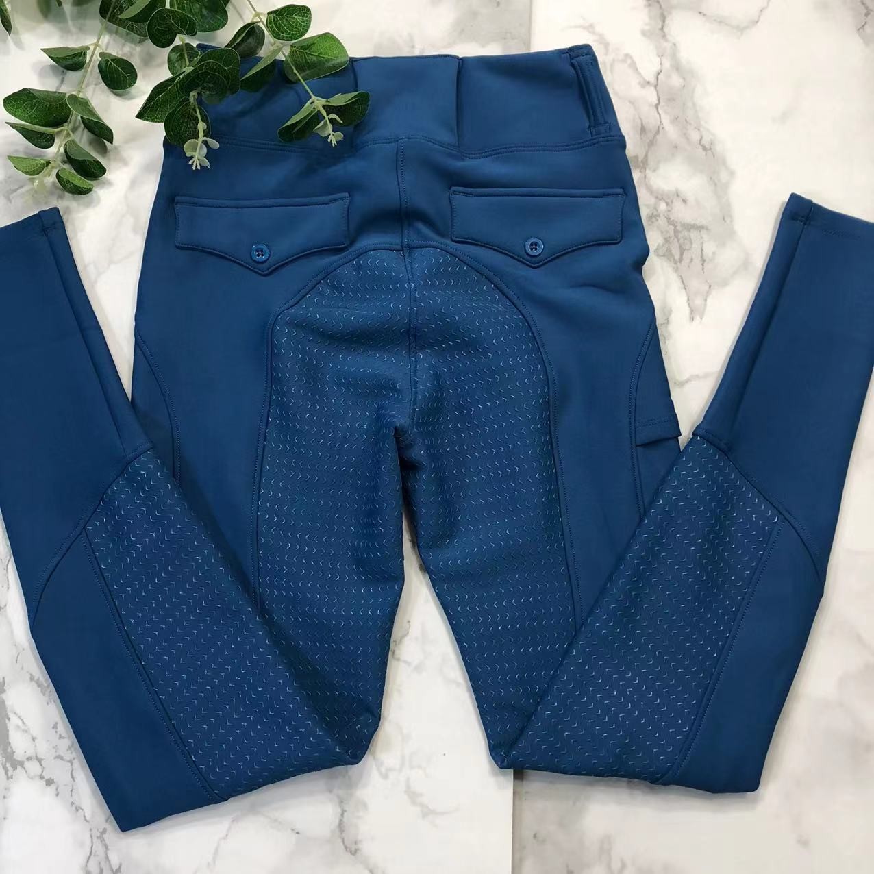 ब्लू विंटर इक्वेस्ट्रियन बर्शेड ब्रीच पॉकेट के साथ फुल सीट सिलिकॉन हॉर्स राइडिंग पैंट